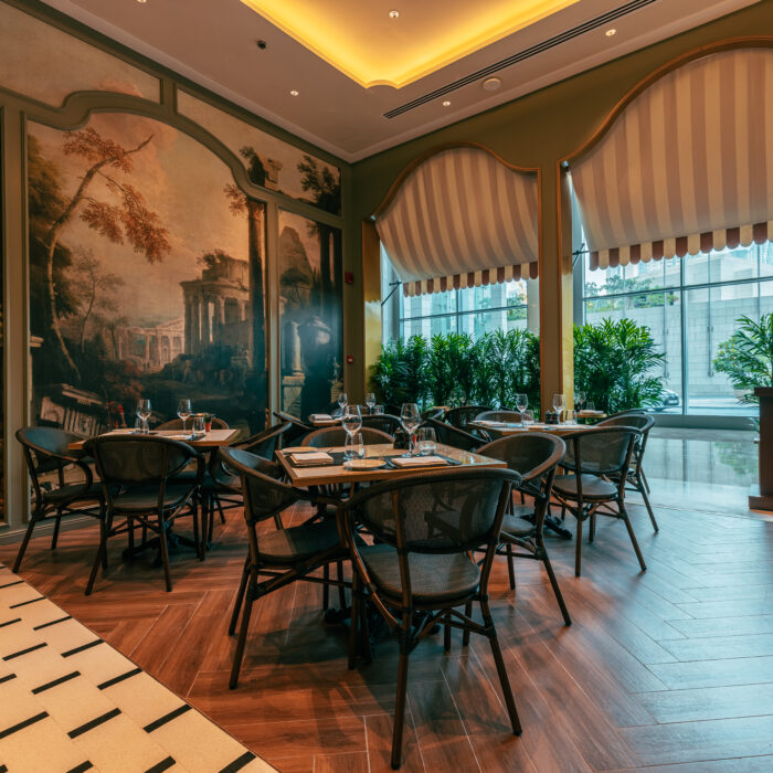 Gusto blends refined design with the warmth of Italian hospitality. Soft lighting, marble finishes, and olive-green tones create a sophisticated yet welcoming atmosphere.The space is designed for both quick coffee breaks and relaxed business lunches, with a seamless flow between the bar, tables, and cozy booth seating. Every detail reflects understated luxury inviting guests to slow down and savor the moment.